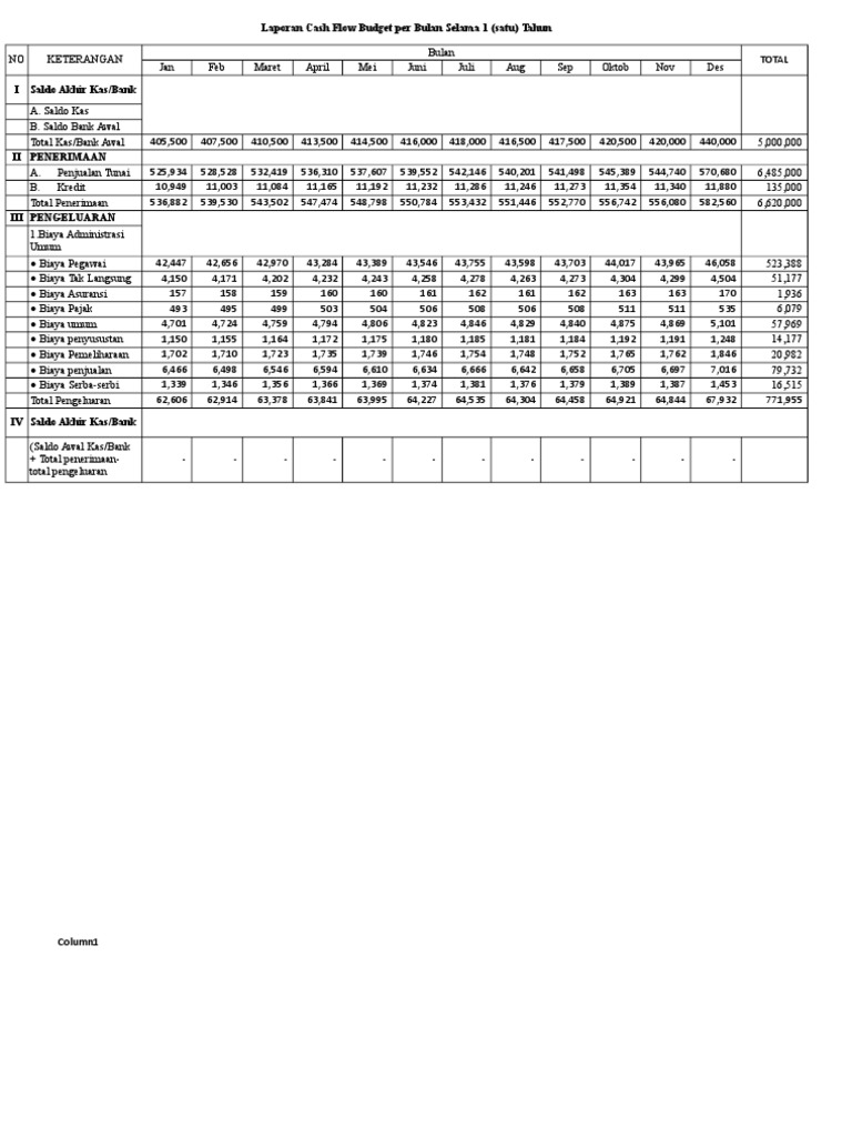 Contoh Format Cash Flow 1 Tahun