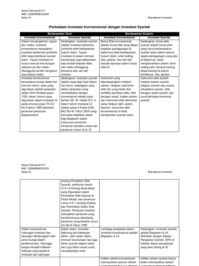 Perbedaan Investasi Konvensional Dengan Investasi Syariah