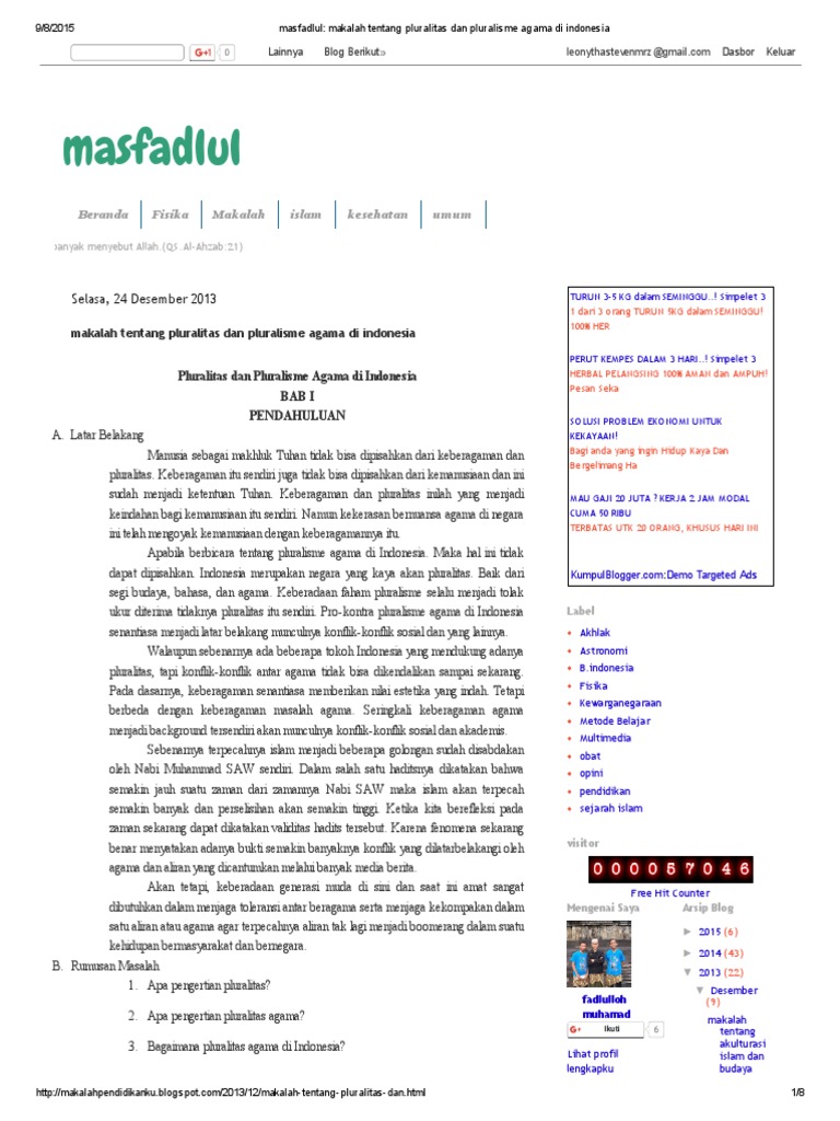 Masfadlul_ Makalah Tentang Pluralitas Dan Pluralisme Agama