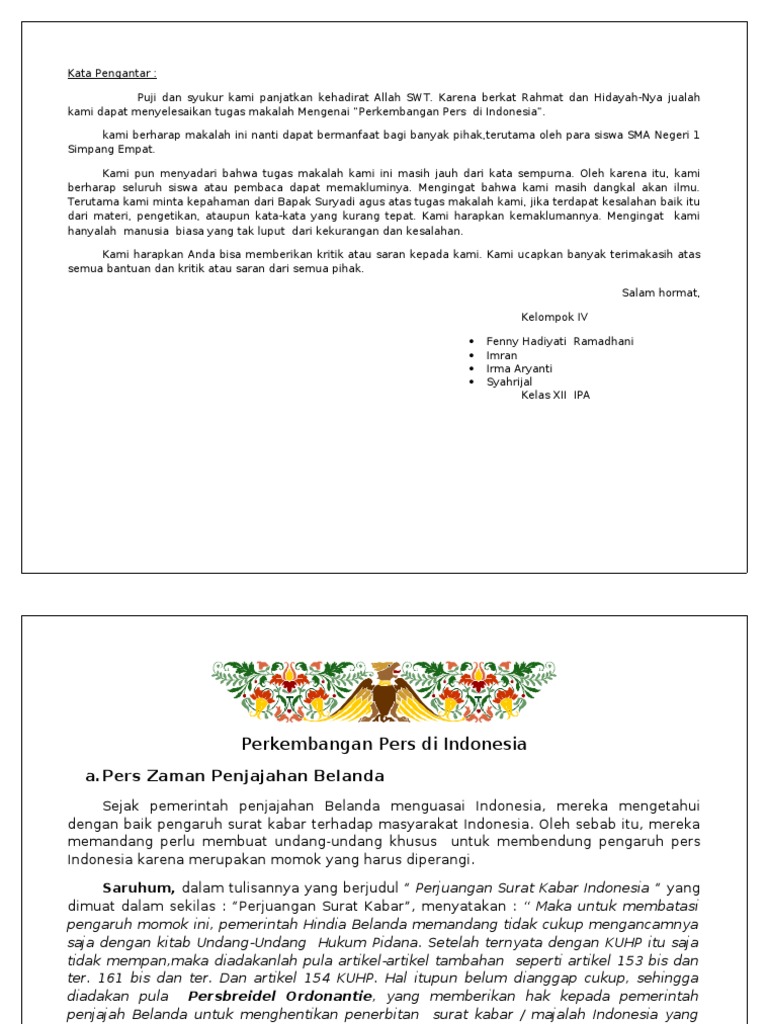 Makalah KN, Perkembangan Pers Di Indonesia